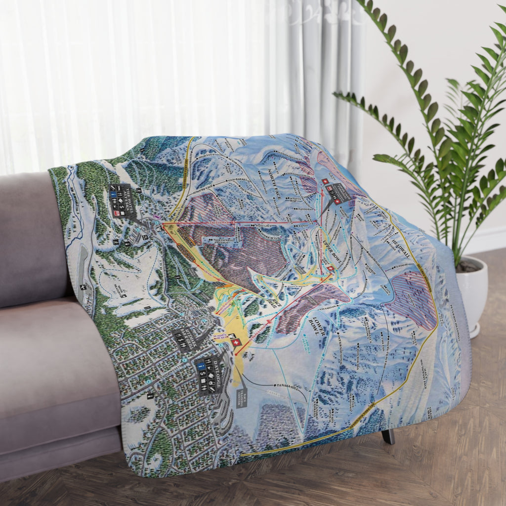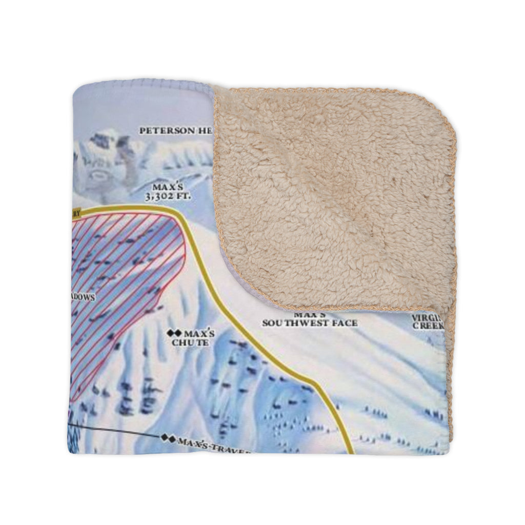 Tan sherpa side with Alyeska Resort winter trail map print